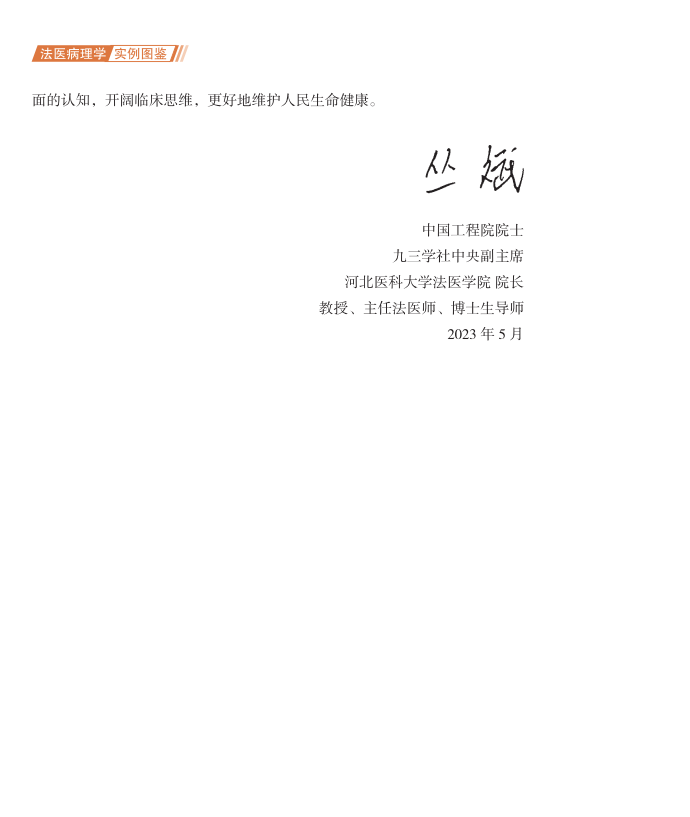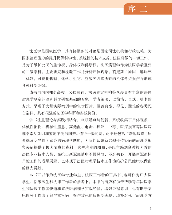 本书的出版有助于帮助青年法医学生和法医工作者快速积累法医病理学实战经验,增强证据意识;也有助于临床医务工作者了解严重疾病、损伤致死的病理学表现,填补对死亡病理学方面的认知,开阔临床思维,更好地维护人民生命健康。
