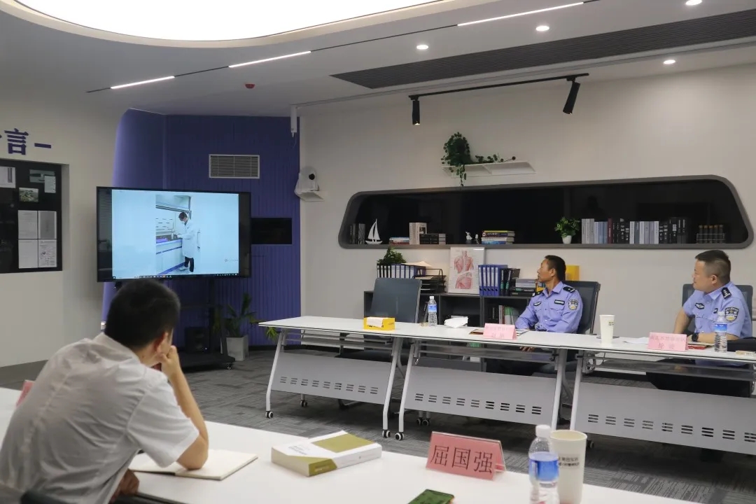 2023年5月22日,湖北省公安厅禁毒总队禁制禁种支队长徐骏、四级高级警长赵鹏莅临我中心调研指导。我中心负责人屈国强、党支部书记马静红、中心副主任周小伟陪同并参加座谈。