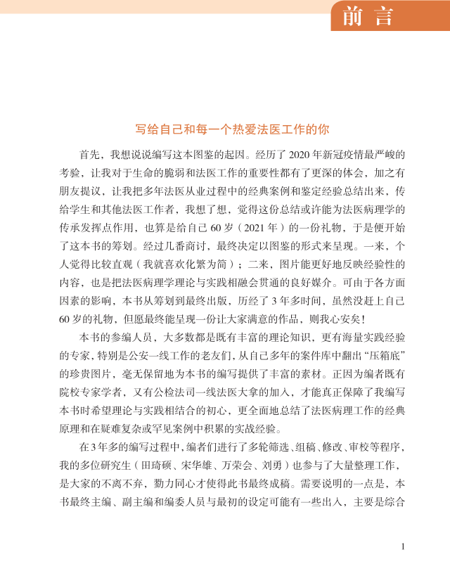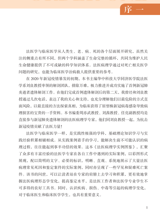 本书的出版有助于帮助青年法医学生和法医工作者快速积累法医病理学实战经验,增强证据意识;也有助于临床医务工作者了解严重疾病、损伤致死的病理学表现,填补对死亡病理学方面的认知,开阔临床思维,更好地维护人民生命健康。