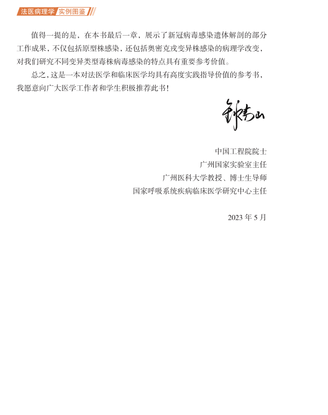 《法医病理学实例图鉴》由中国工程院院士钟南山、中国工程院院士丛斌作序推荐,相信这本注重理论与实践相结合,兼顾经典与创新的法医病理学专著,将完善法医学人才培养的专业知识和理论体系,拓展法医学视野,对我国法医学的发展、完善法制建设、打击犯罪活动等有着积极作用。