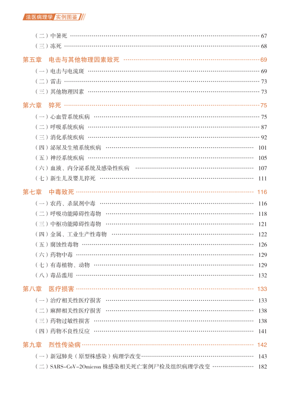 《法医病理学实例图鉴》由国内知名高校、公检法司、法医鉴定机构等众多具有丰富的法医病理学鉴定经验和科学研究基础的专家、学者编著,清晰、直观、系统地展示了大量法医病理常见死因和鉴定案件的实际案例,同时亦呈现了一些罕见和疑难死亡案件。值得一提的是,本书还囊括了新冠病毒(原型株及变异株)感染的病理学图照,为我们认识新兴烈性传染病的病理学损害表征提供了极为宝贵的资料。