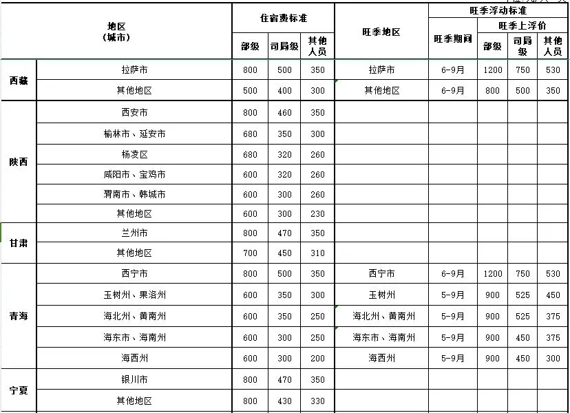 伙食补助费:西藏、青海、新疆为每人每天120元,其他地区均为每人每天100元。