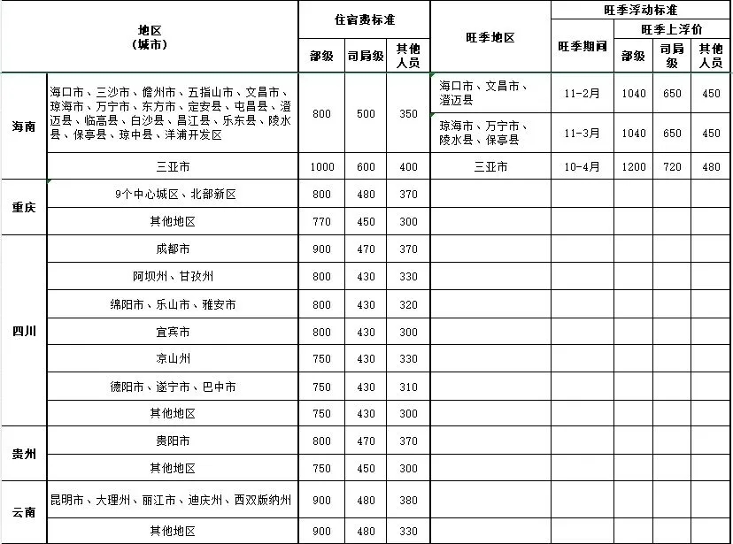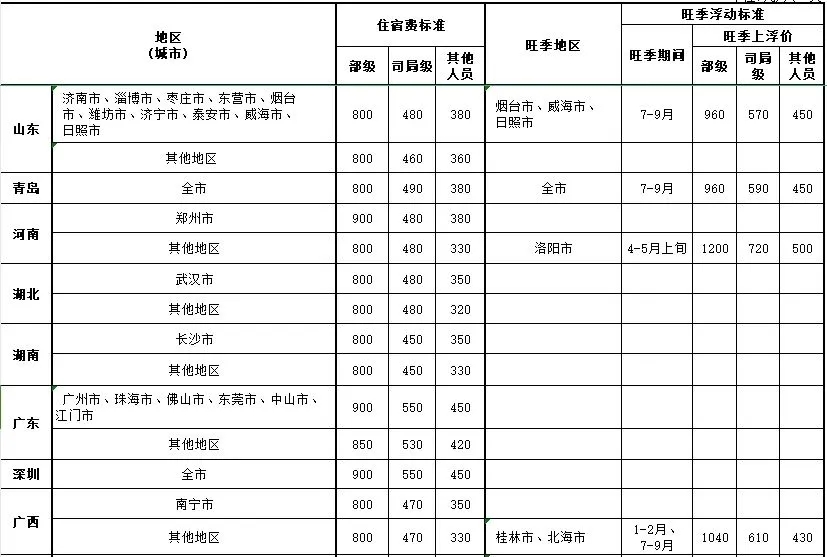 住宿费:省内出差的,住宿费标准上限为每人每天320元。省外出差的,住宿费标准上限按财政部统一发布的标准执行。